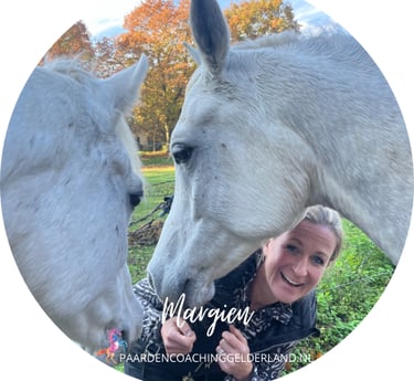 Januari 2025 "Margien, bedankt voor de mooie sessie bij jou. Enerverend en leerzaam. Ik voel mij lichter, fijner en zelfs het rotgevoel in mijn buik is zachter. Margien is een zeer enthousiast persoon, die weet waar ze het over heeft. Ze heeft een eclectisch programma en gebruikt wat nodig is. Ze kent de taal van de paarden. Hierdoor maakt ze verbinding met jou en je diepe ik. Zo'n 6 jaar geleden deed ik een aantal leiderschapssessies met haar grote paard Zack, dat heeft mij ertoe gebracht om veel krachtiger voor de klas te kunnen staan en nu weer een ervaring rijker."